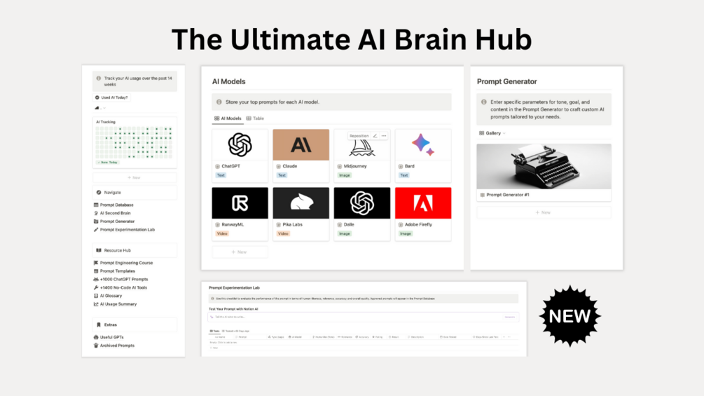 The AI Ultimate Brain Notion Hub is the premier all-in-one solution for anyone looking to maximize their AI potential and take their AI operations to the next level.