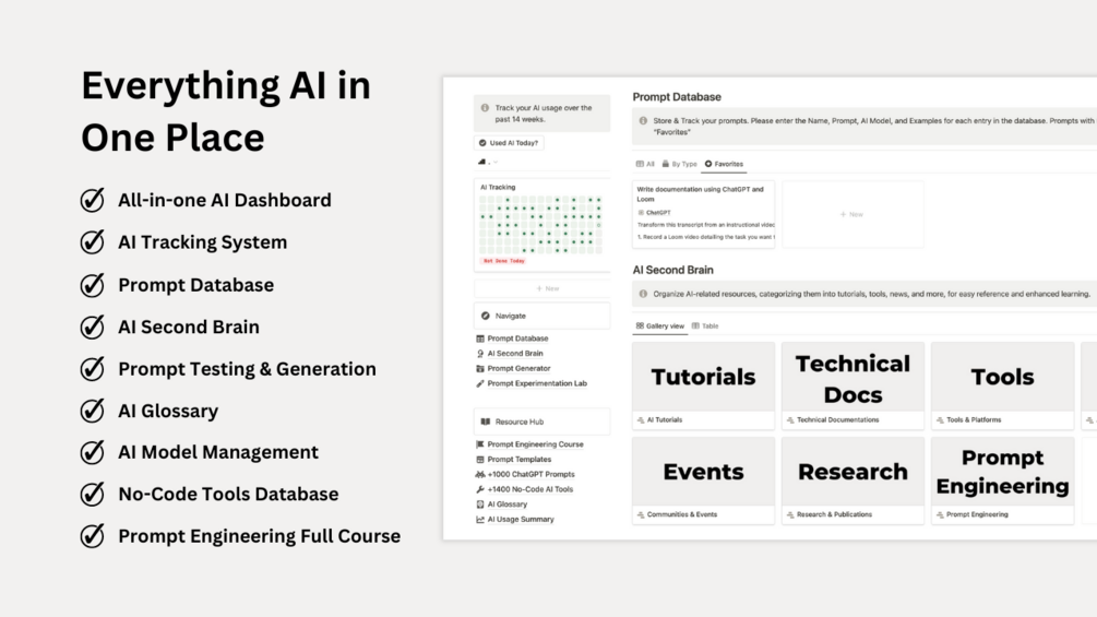 - AI Second Brain: Access a treasure trove of AI resources, neatly categorized into AI Tutorials, Tools & Platforms, AI & Tech News, and more, for enriched learning and quick reference. (pre-loaded with 100+ essential resources)